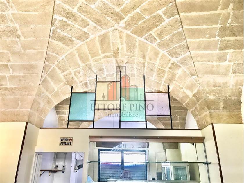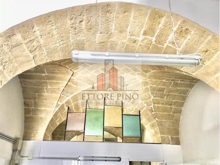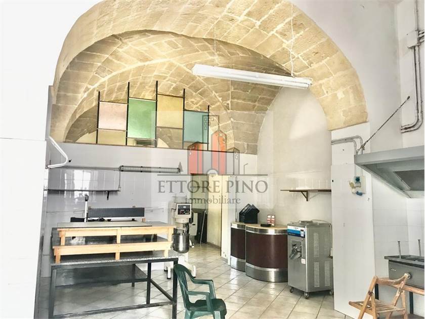 Il locale al piano terra comprende due campate con soffitti a volta lasciati a vista, un vano pluriuso, un deposito e una cantina. La strada ampia e di forte passaggio garantisce visibilità. La posizione consente di raggiungere facilmente a piedi tutti i principali servizi presenti nella cittadina di Parabita.