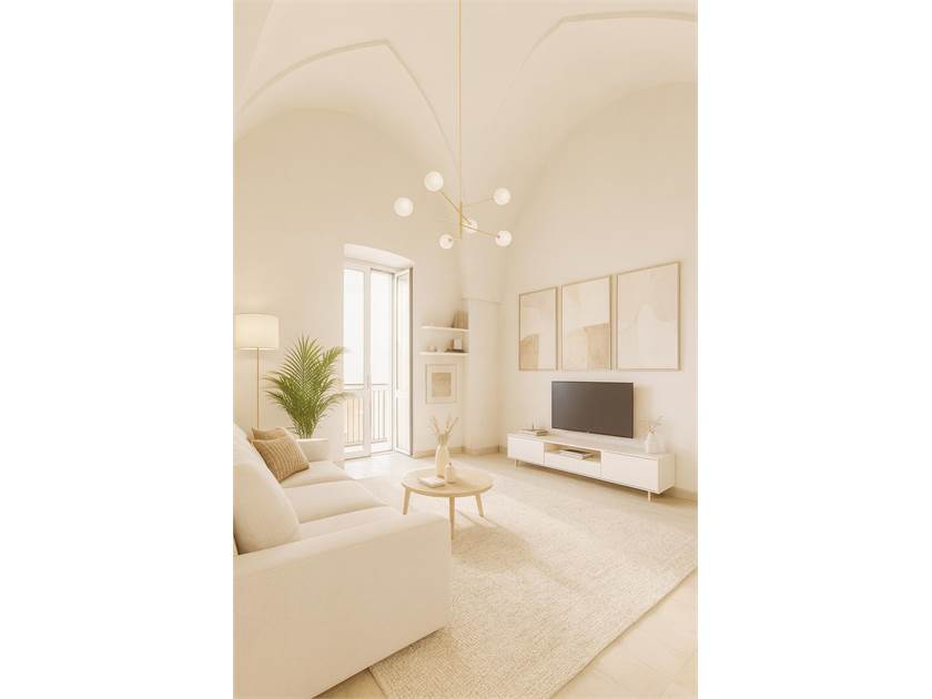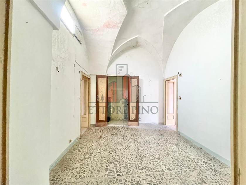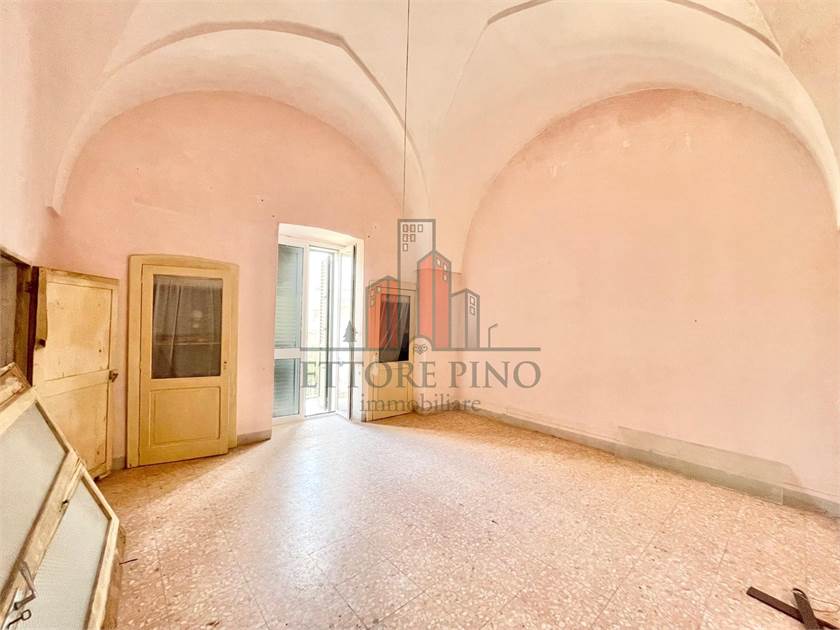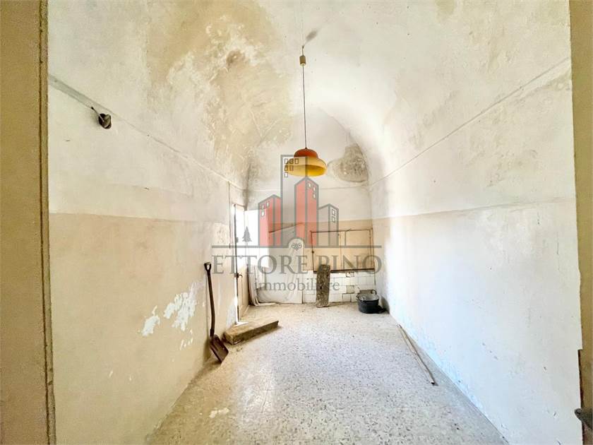 L’immobile è composto da un locale al piano terra e un’abitazione al primo piano. La casa, con ingresso e scala indipendenti, si sviluppa in due ampie stanze con caratteristiche volte a stella, dotate di balconi che si affacciano sulla strada principale. Completano la zona giorno una cucina con volta a botte, un camino tipico dell’epoca e un loggiato esterno, oltre a un bagno. È inoltre presente una zona attigua, costruita più di recente (ulteriori tre vani), ancora da ultimare. La terrazza di esclusiva proprietà offre una vista panoramica.