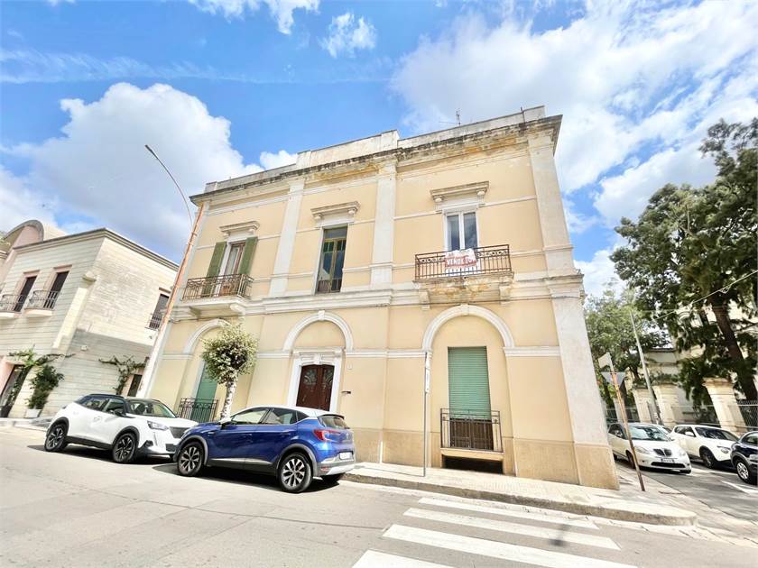 Situato a pochi chilometri da Gallipoli, nella zona sud del Salento in Puglia, questo palazzo nobiliare risale ai primi anni del 1900 ed è caratterizzato da un'imponente facciata angolare su tre strade, con più accessi diretti alla via. Le maestose stanze aprono la zona giorno, e ampi balconi luminosi si affacciano sui tre lati aperti del palazzo. È uno dei pochi edifici centrali che dispone di un giardino al piano terra, con una superficie coperta di circa 500 mq, oltre a un garage e una cantina. Dalle terrazze si possono ammirare il castello angioino, la Basilica Madonna delle Coltura e il centro storico del paese.