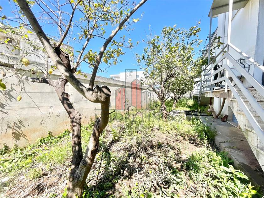 Spiazzo per parcheggi e carico/scarico; giardino retrostante con alberi da frutto.