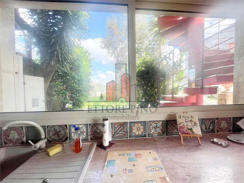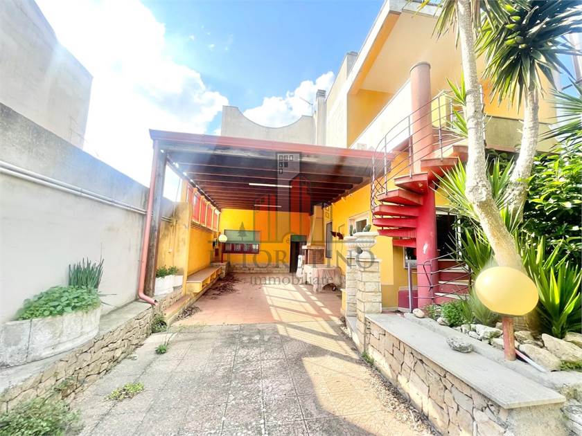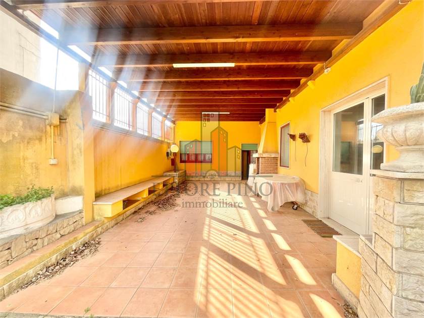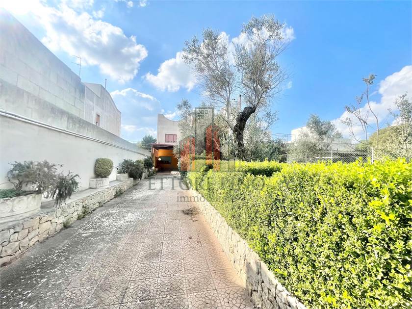 L’immobile, con più ingressi, è composto da un appartamento al piano terra e uno al piano primo. Entrambi sono luminosi, con ampie camere, balconi, spazi esterni pavimentati e giardino curato. VANI totali 9, bagni 3; presenti: camino, condizionatori, AQP ed Enel .